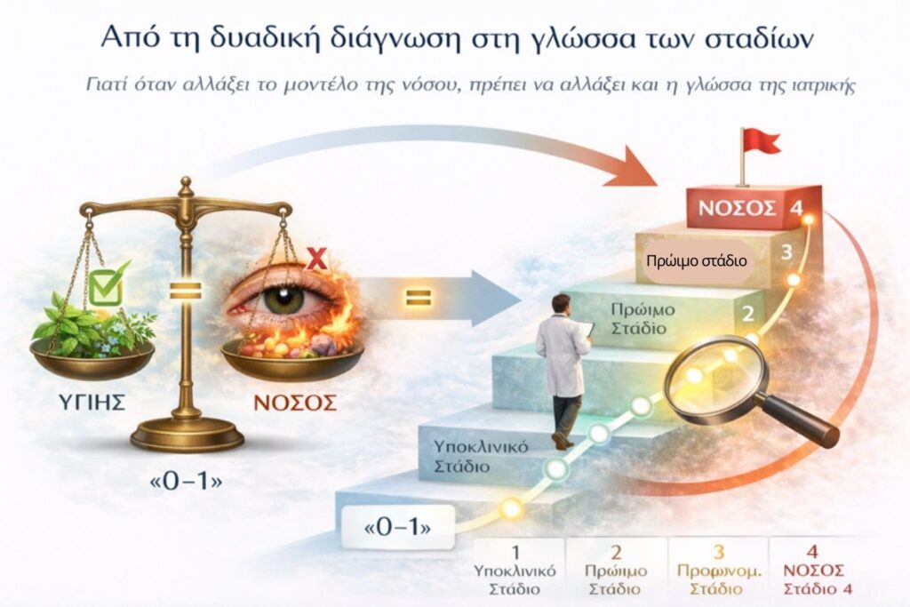 - Classical Ophthalmology relies on binary diagnostic models that inadequately describe the temporal and functional evolution of disease.